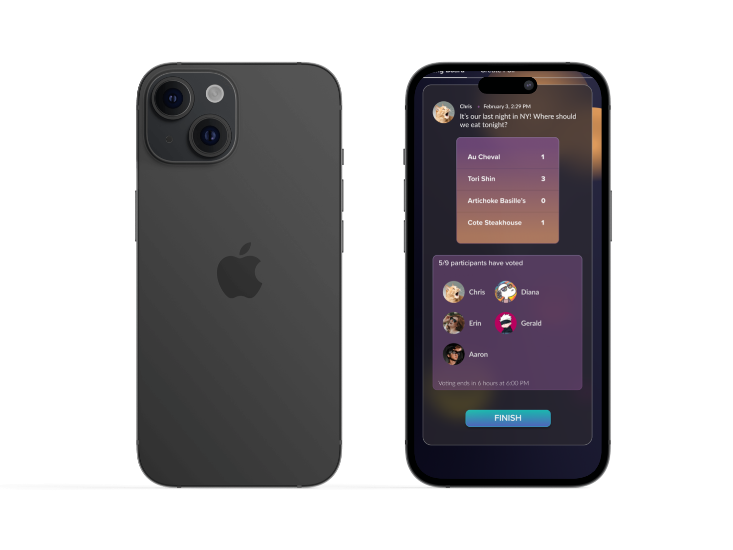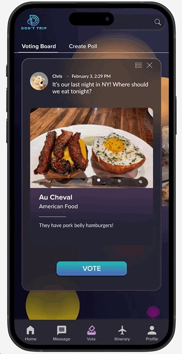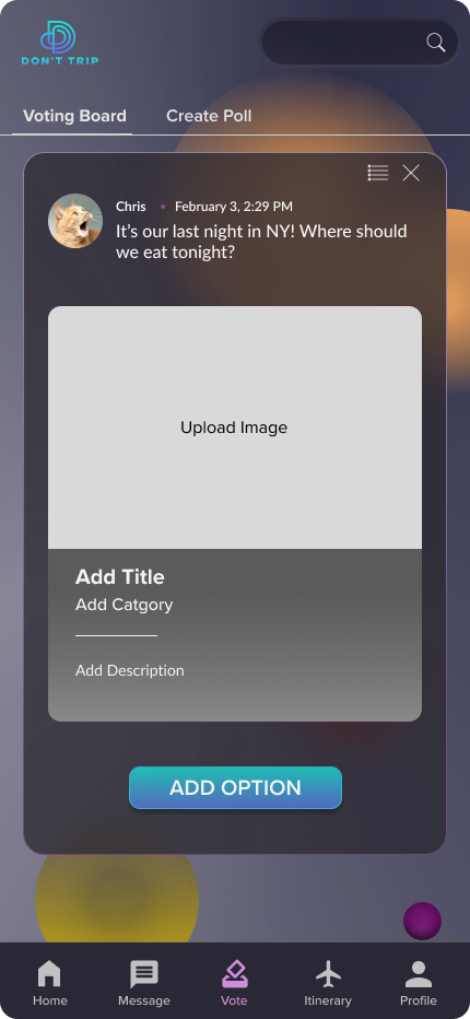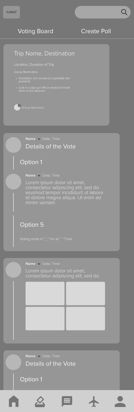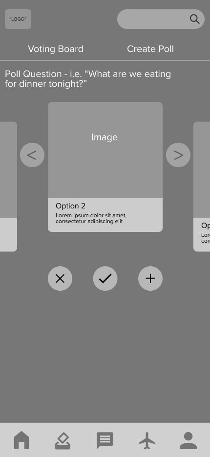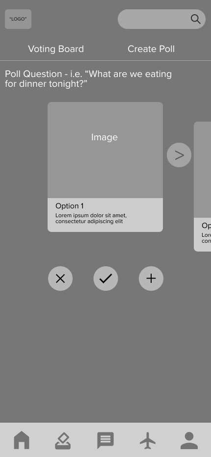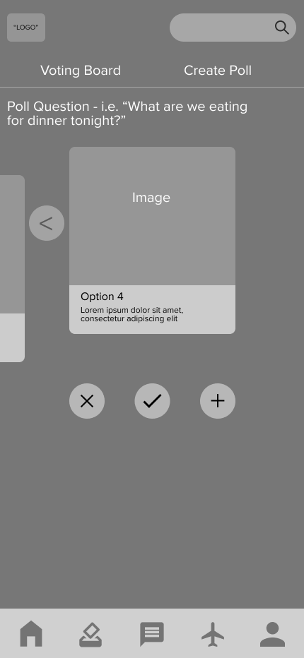 The initial concept of the ‘Voting User Flow’ revolved around integrating a visually engaging "carousel" feature with images, aimed at captivating users while facilitating group communication and fostering consensus.