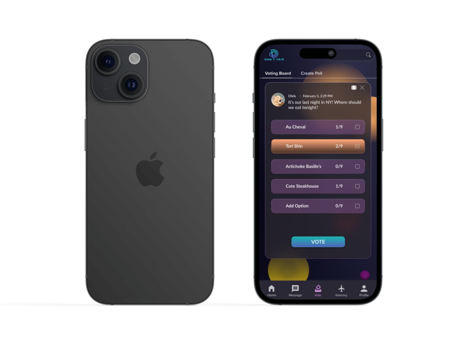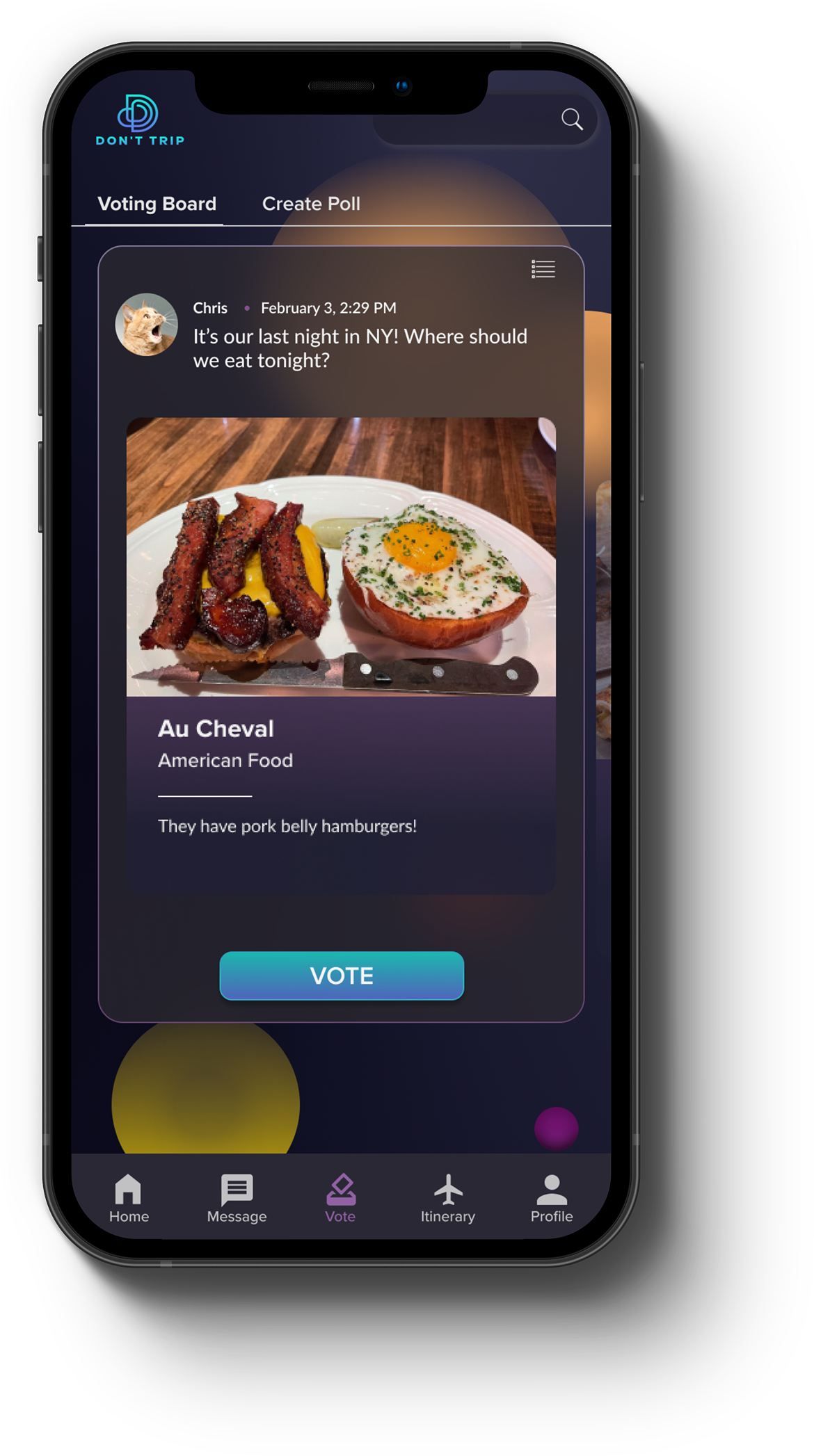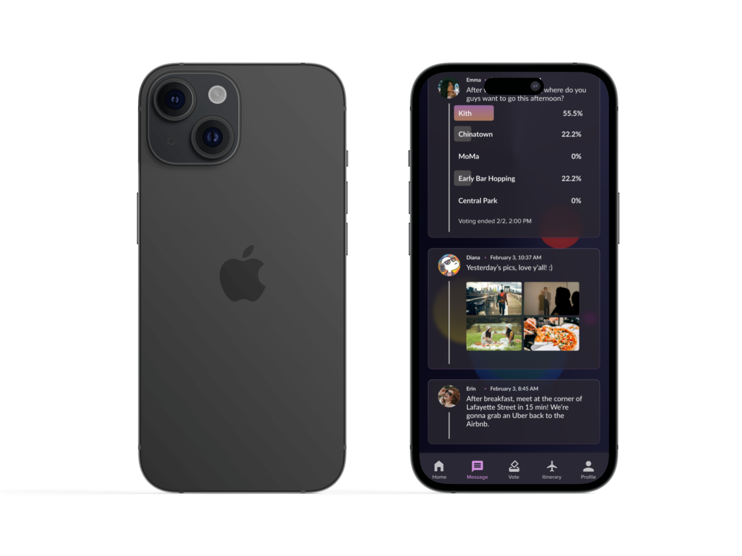 A mobile app facilitating group consensus and connectivity for enhanced enjoyment and coordination during group trips.