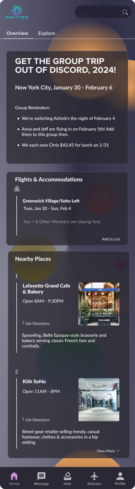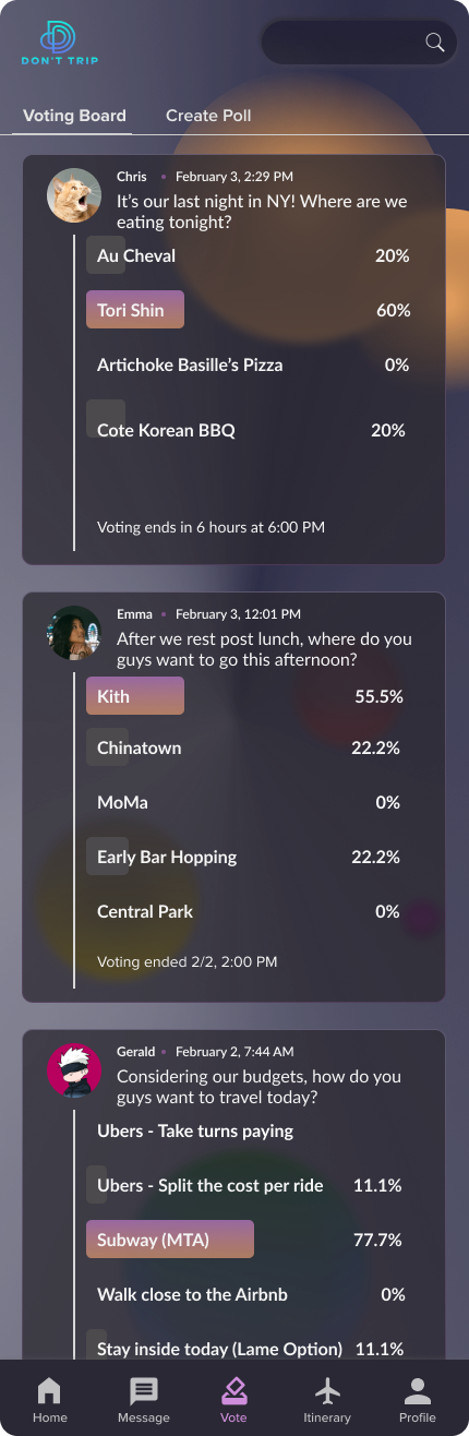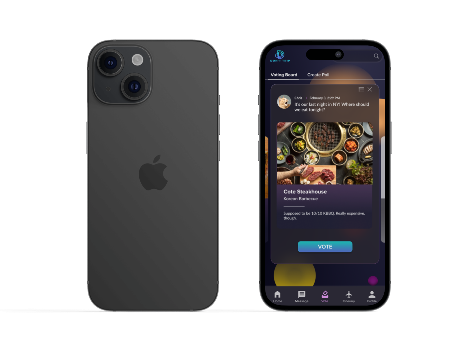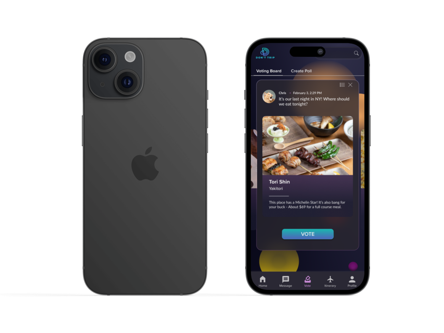 A mobile app facilitating group consensus and connectivity for enhanced enjoyment and coordination during group trips.