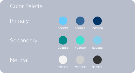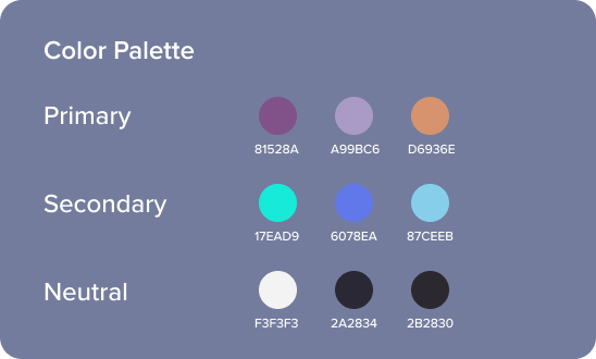 The card color is similar to the background color to allow the text to pop, and the “CTA” button is the same vibrant blue hue as the logo, allowing it to shine on screen while maintaining a sense of visual harmony.