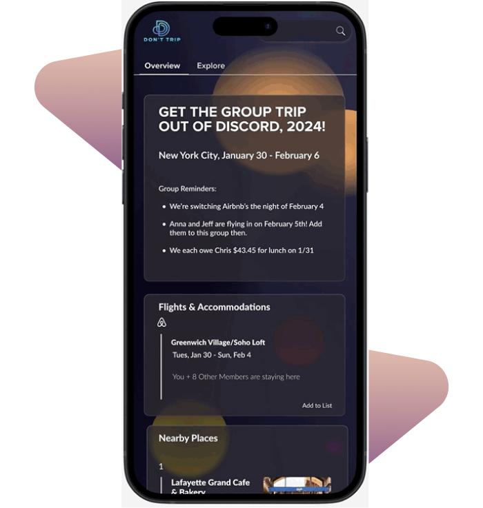 Most users, especially users who have experience going on group trips, are already acutely aware of the upcoming stress during the excursion’s planning stages. There are instances in which this stress can halt the trip altogether.