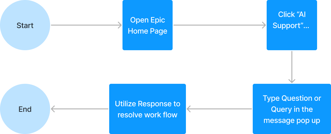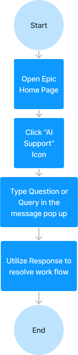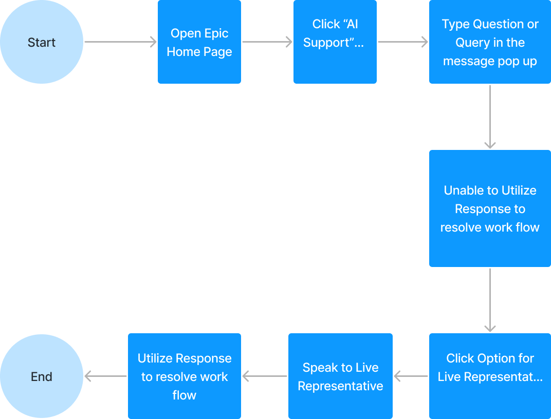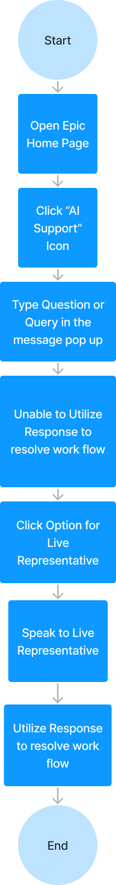 With a focus on AI chat essentials, I decided to create two connected task flows that should be utilized to solve issues that arise during Epic usage.